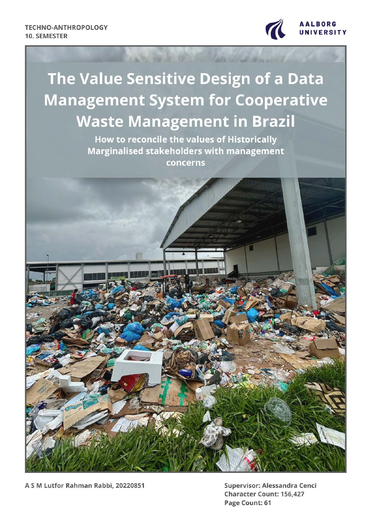 Waste pickers (catadores in Brazilian Portuguese) in Brazil play a vital role in urban waste management, but they remain socially and institutionally marginalised. At the Cooperativa de Catadores Recicla Mais Brasil, waste pickers have largely been excluded from former initiatives aimed at designing digital solutions to support and enhance their daily work practices. Namely, their roles, needs, and values have received little to no consideration in design processes, while perceived deficits in transparency, together with ongoing power imbalances, have resulted in mistrust and hinder the development of inclusive and accountable digital solutions. This thesis aims to adopt an ethical approach for designing a Data Management System (DMS) within the Erasmus+ Egalitarian project, ensuring the inclusion of waste pickers’ values while addressing the operational needs of the cooperative management. The research adopts a techno-anthropological perspective and employs Value Sensitive Design (VSD) as its main framework, and particularly, a participatory VSD to involve a wide range of stakeholders, including historically marginalised waste pickers in the design process. Here, participatory methods such as ethnographic fieldwork, interviews, and workshops were conducted in Brasília (Brazil) and Copenhagen (Denmark) to uncover stakeholder values and manage the value tensions that arose during the design process. This strategy delivers the value hierarchies that can be embodied technologically to identify design requirements and technical solutions for the Data Management System (also referred to as EcoSistema), integrating ethical design principles. As a result, the stakeholders’ values and norms have been balanced and prioritised to integrating them into concrete digital solutions for an ethically grounded DMS suitable for fairer waste management in Brazil. Indeed, functional features are not only supported by ethical principles, but also due to more inclusive and participatory design practices, digital products generated can be agents-/context-sensitive and enact more sustainable digital practices in the Brasília’s waste management sector.